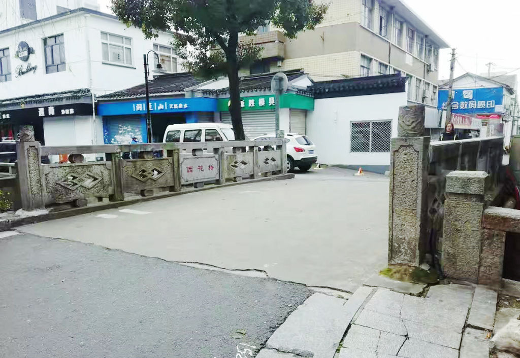 | 西花桥 位于西花桥巷东端。宋《平江图》著录,称花桥。跨临顿河。1962年改建为石条平桥,砖砌栏杆。民国《吴县志》载:“花桥,在南新桥北,唐白居易诗‘扬州驿里梦苏州,梦到花桥水阁头’,即此。清嘉庆三年(1798)重修。”明清时期,有大批花缎工每天在此待雇。原桥西北侧设有“上天五庙”,俗称“猛将堂”。解放前夕庙宇拆除。桥西侧青石栏杆上刻有浮雕图案花纹,今南首沿河,石条尚有石刻花纹可寻。1999年12月重建,花岗石栏杆,水泥路面。 | ||