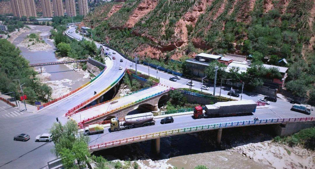 折桥湾大桥,位于临夏市与东乡县相邻的折桥湾,长度为130米,宽36米。值得一提的是,在折桥湾不足100米的地方,三桥并行而立,其中东乡段长度为47米,建于1970年。两桥中间一座已弃用。