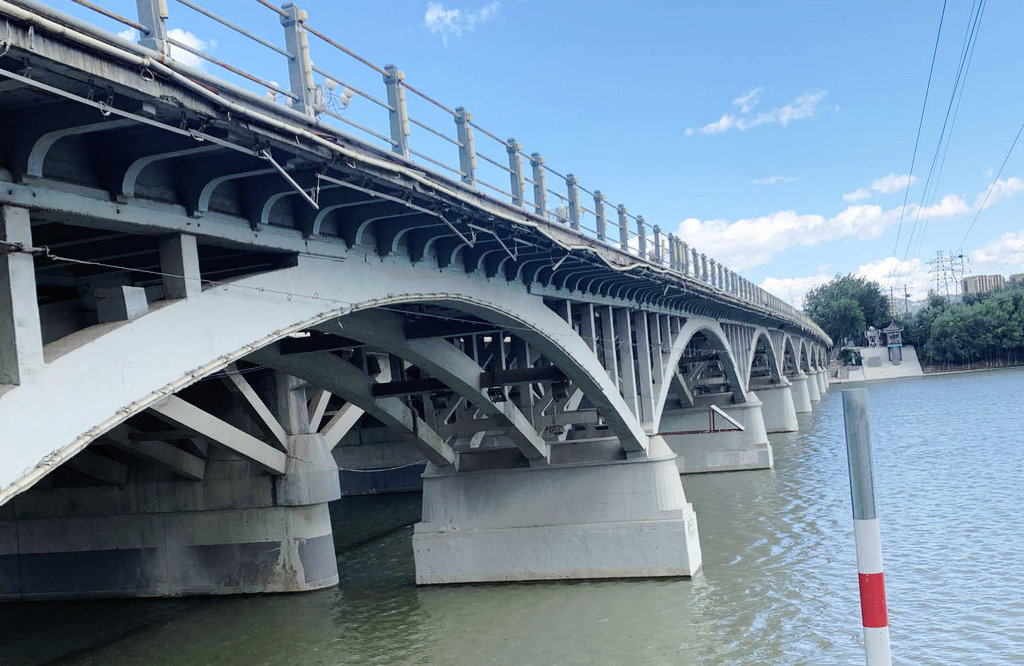 1923年,法国人普意雅设计的京门公路桥(洋灰桥、水闸旧桥),上承式钢筋混凝土双铰拱肋拱桁架桥,8孔30米,开创北京和中国现代公路混凝土桥梁历史。