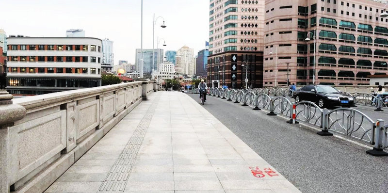 福建路桥,俗称老闸桥,桥北面为静安区福建北路,南面为黄浦区福建中路,桥长97米,宽20米。福建路桥桥址处原为清康熙年间建造的一座三洞石闸,上设浮桥可供行人通过。1864年,建成木桥,1885年6月,工部局将旧木桥拆除,新建一座7孔木桥,取名老闸桥。1946年因旧桥毁损严重,遂将旧桥拆除重建成长长61.6米的新木结构桥,并更名福建路桥,1966年,木桥拆除,改建成长71.4米,宽11.58米的钢筋混凝土双曲拱桥,于1968年建成。因桥遭遇多次船撞事故而变为危桥,2001年,旧桥拆除。目前的福建路桥2004年2月开工建设,2007年底竣工通车。