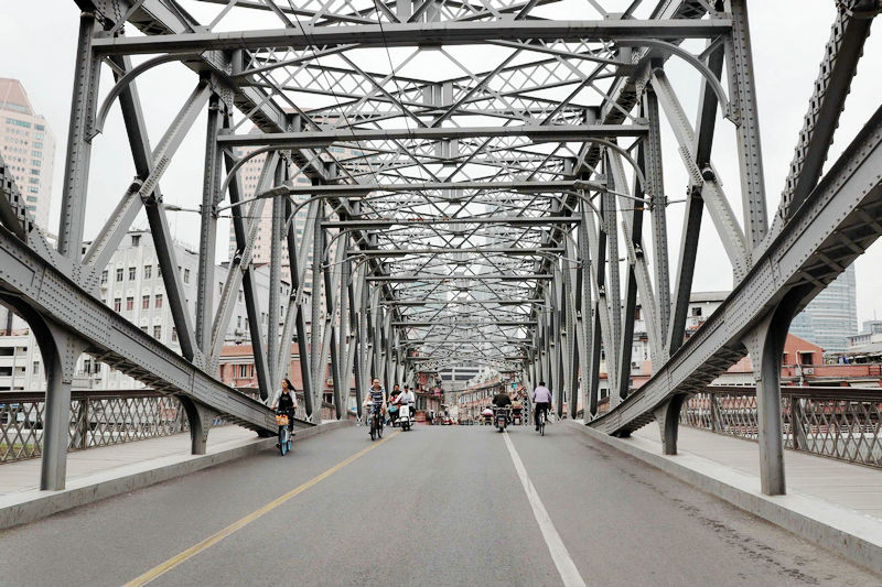 浙江路桥是苏州河上桥龄仅次于外白渡桥的百年老桥之一,也是我国目前仅存的几座鱼腹式简支梁钢桁架桥之一,更是一座国宝级桥梁。 |