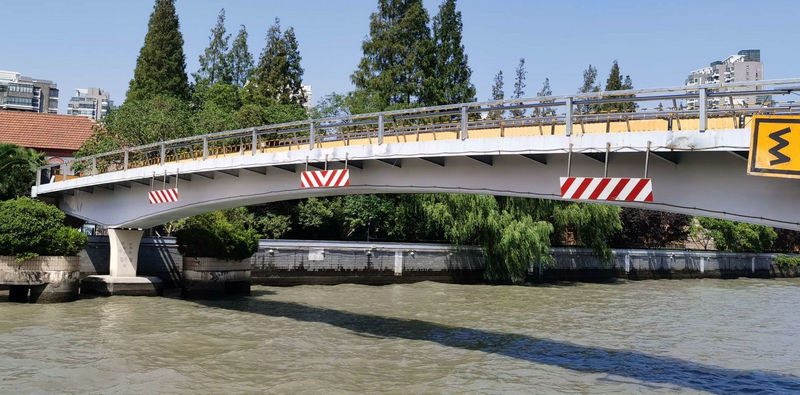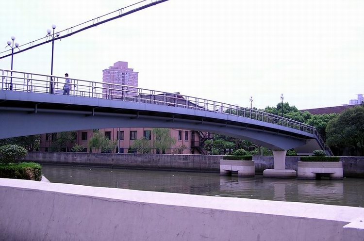 这是一座华东政法大学联系南北校区的专用人行桥,也是长宁区万航渡路径直到普陀区光复西路的通道。1980年建造的钢筋混凝土桥。