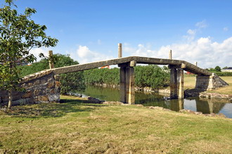 积善桥 原位于金汇镇齐贤社区老东街,清同治八年(1869年)建,又称老石桥。全长17.14米、宽1.50米,跨径5.20米,三跨双拼立柱墩平梁桥。2001年整体迁于海湾旅游区。