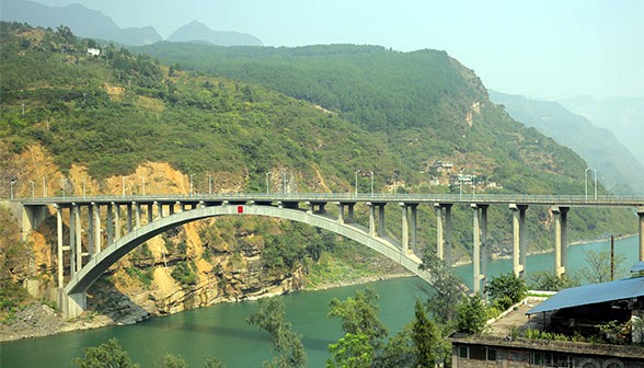 | 乌江羊角大桥位于羊角镇街尾,处于五里滩中游,全长318.8米、宽9.5米,路基总长188.378米、宽8米。 大桥四面环山,横跨乌江,桥梁主跨为255米,最大吊装重量为70吨,大桥箱型拱170米,跨度为我市在建和已建跨度最大的桥梁。 大桥最高通航水位194米,最低通航水位159米。2007年10月6日开工建设,工程建设历时两年。总投资3000万元,由市交委、市扶贫办、县政府共同出资建设。2009年01月20日合拢。2009年10月18日上午,武隆县羊角古镇乌江大桥通车典礼在雨中进行。 |