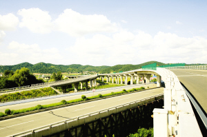 路段在没有立交桥时,因为平面交叉,两侧房屋距离公路较近,影响司机观察路面视野,曾造成几次交通事故,为提高交通安全水平,提升城市整体形象,这是一个在完成环路建设后必须建设的工程项目。为争取这个项目的立项,市委、市政府和交通局领导多次到省里争取资金,经过艰苦努力之后,这个项目终于在2005年11月开工。工期计划为三年,到2007年9月将交付使用,2006年完成桥梁主体、涵洞及全部路基土石方工程,2007年9月30日完成路面排水及交通安全设施全部工程。 七一立交桥为互通立交桥,共设七条匝道,全长5716米,其中,G匝道为对向双车道,其它为单向单车道,东吉大路分离立交桥全长907米。这座立交桥建成之后,不但为辽源的东出口增添了一处美丽宏伟的景观,也使辽源东出口的土地明显增值,为辽源的经济建设、为辽源招商引资奠定了良好的基础。 |