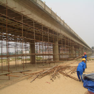 | 宋铁大桥位于湖北省麻城市境内的举水河中游,东连素有“小汉口”之称的宋埠镇,西接“麻城粮仓”铁门岗乡,是麻城县道宋四线(x208)的重要节点,也是宋埠镇和铁门岗乡10余万群众的重要出行通道。 宋铁大桥全桥19跨,全长439.5米,桥宽10米,钢筋混凝土工字型简支梁桥,沥青混凝土路面,桥两边设有人行道,实行人车分流。在宋埠一端设有引桥,连接该镇最繁华的商业街建设路。 自建成以来,宋铁大桥在举水两岸居民的经济、文化交流上发挥了重要作用,随着车流量的日益增加,再加上建成多年,大桥不堪重负,于2008年12月进行了危桥加固工程(加固项目:工字梁梁底粘钢、盖梁粘钢、墩台修补、增设横系梁、微弯板裂缝处理),加固后的宋铁大桥焕然一新,以崭新的面貌迎接八方来客。 |
