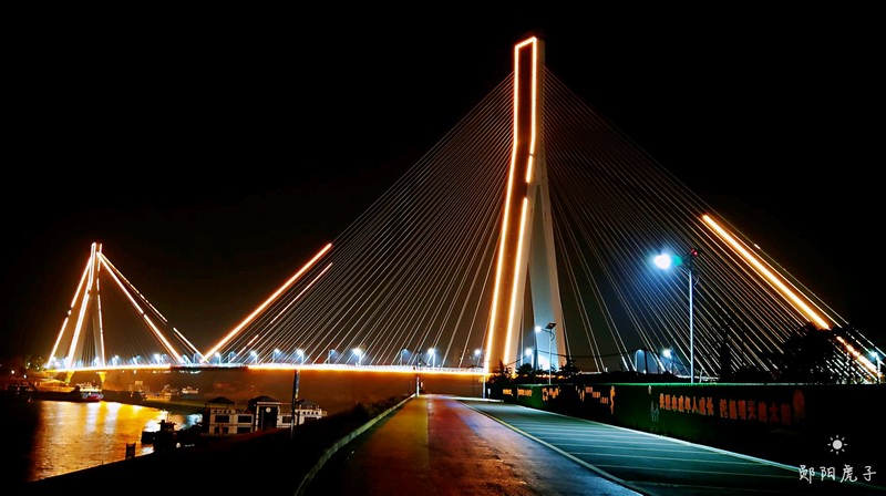 郧县汉江大桥。号称“亚洲第一斜拉桥”,亦称“坝上第一桥”。该桥是沟通郧阳区城区和柳陂镇的一座双塔斜拉桥,跨越汉江,是209国道上重要桥梁。大桥于1990年11月7日开工建设,1994年2月1日试通车。是中国第一座地锚式大跨度预应力混凝土斜拉桥,当时同类桥梁中堪称“亚洲第一”。该桥通车,结束了从十堰城区过江到郧县全靠船只运载的历史。原国家主席李先念为该桥题名。