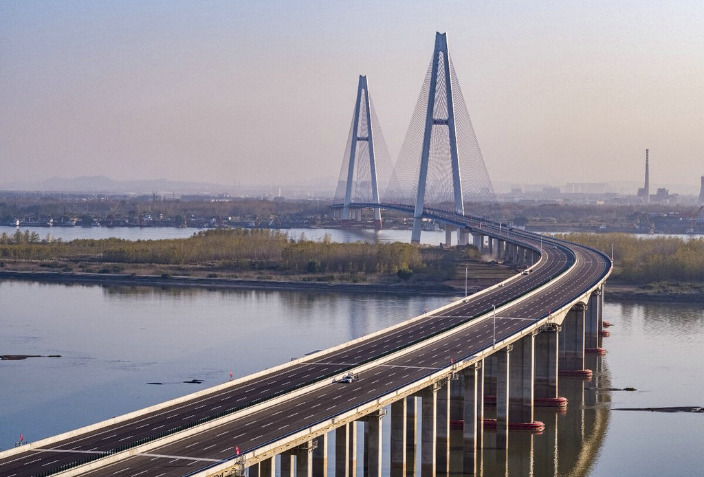 | 〈长江〉〔武湖长江大桥〕[鄂S40四环线·A型双塔双索面斜拉桥]{黄陂区 |