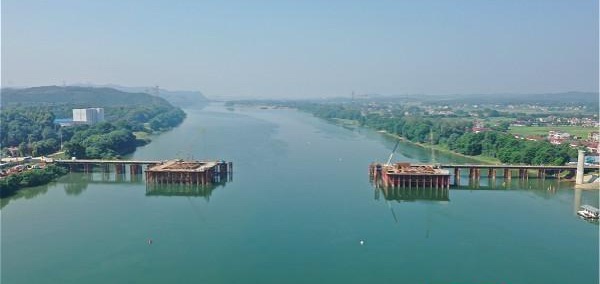 | 常益长高铁资水特大桥位益阳市资阳区和桃江县境内,南起桃江县桃花江镇人和桥村,北至资阳区新桥河镇,全长9267.57米,其中桃江县段长5850.57米,是常益长高铁项目的控制性工程和重难点工程。桥梁基础为桩基础,共计2389根,最长桩长66米,墩柱为柱式墩,全桥桥墩最大高度29.85米,全桥共276跨。主桥采用连续梁拱,上跨资水,主桥桩基础采用双壁钢围堰施工,主梁采用挂篮悬臂法浇筑,而后设置拼装支架,安装拱肋及吊杆。施工区域为Ⅲ级航道,水深达11米。 | ||