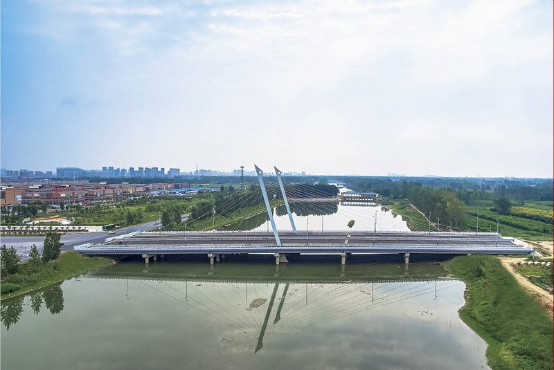 该工程桥梁全长217米,桥梁跨径为7-30米,上部结构为预应力后张法小箱梁;下部结构为柱式墩台、钻孔灌注桩基础;采用双索面斜拉桥方案进行装饰;全桥分两幅布置,全宽48.5米。工程总价约为3374万元。