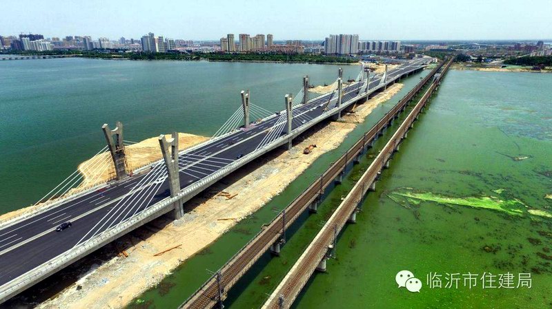 | 陶然路沂河大桥全长1712.4米,主桥长523.2米,为五塔六跨连续矮塔斜拉桥,主塔10座。工程计划于2014年6月10日至2016年6月10日进行建设大桥连接了兰山区的陶然路和河东区的皇山路,有效地缓解上游沂河大桥与下游罗湖大桥的交通压力,是联系临沂市区与东部经济地区的重要交通枢纽。