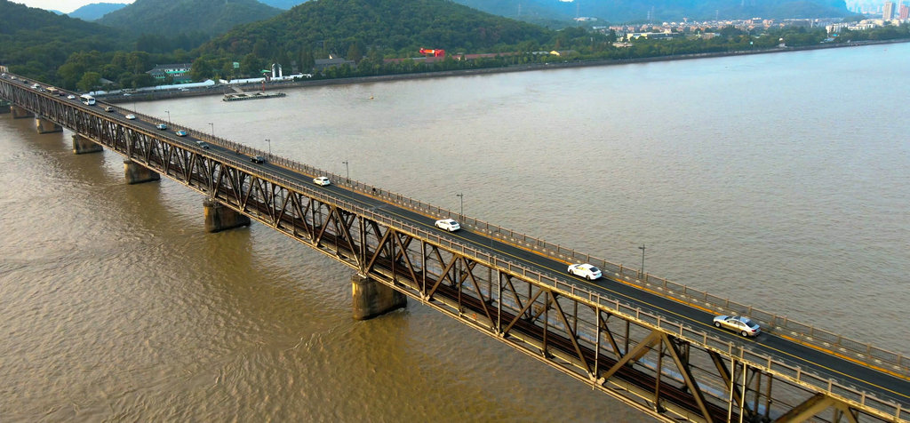钱塘江大桥位于浙江省杭州市西湖之南,六和塔附近的钱塘江上,是我国自行设计、建造的第一座双层铁路、公路两用桥,横贯钱塘南北,是连接沪杭甬、浙赣铁路的交通要道。
