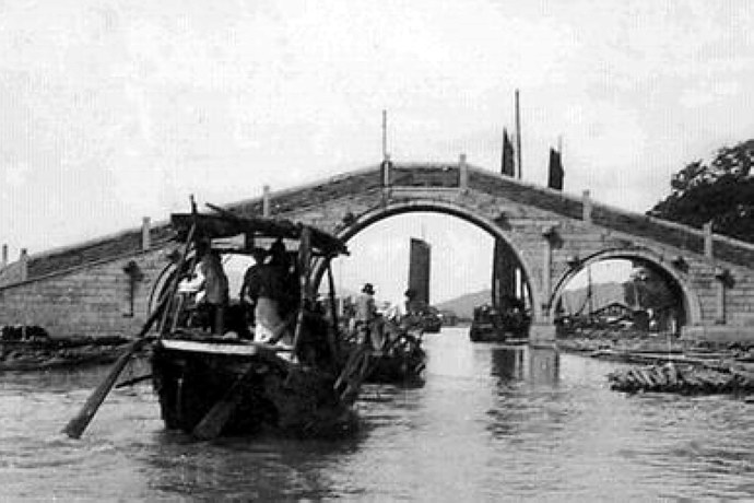 枣市桥 在泰让桥西南,南出向阳桥沿河,北出枣市街。桥因街得名。原为清代三孔石拱桥。1981年因碍航拆除,改建为钢筋水泥大跨度单孔虹桥,两坡各有37级台阶,中央有80厘米宽的过车道,水泥桥栏。