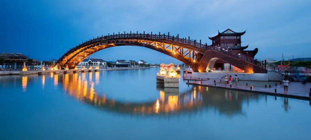 | 位于苏州胥口镇胥江古运河上的木拱桥取名《胥虹桥》,全长120米,单跨跨度达到75.7米。建造这座木拱桥一共使用了400立方米的木材,全部采用7厘米宽、3厘米厚、2米左右长度的小木条拼接胶合而成。小木片也可以造出“大家伙”。 桥面呈喇叭口状,桥头位置宽12米左右,拱顶最窄处为6米。用了400立方米木材,载重能力为195吨,桥面可同时站3000名成年人,是目前世界上跨度最大的木结构拱桥。 |