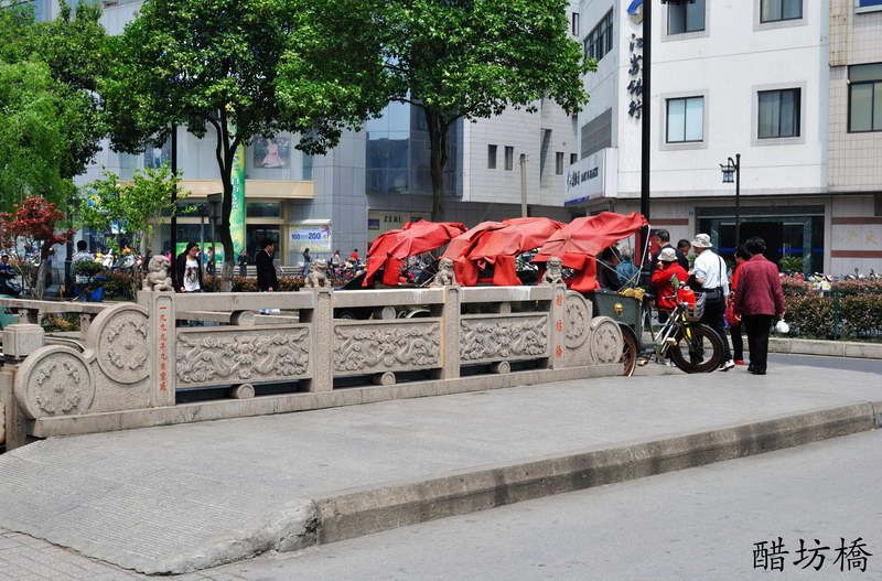 | 醋坊桥 位于观前街东端,跨临顿河。宋官立醋坊于此,因以名桥。《吴门表隐》载:“宋治平二年(1065),道士方希辨、孔应期募建。元至元二十四年(1287)僧智净捐募重建。明天启四年(1624),里绅郭忠宁、申绍芳、顾顼捐修。国朝乾隆元年(1736),里人重建,道光五年(1825)潘师升、曹元潜、江元荣、潘筠霄等再建。”又载:“醋坊桥洞碑有‘大乘陀僧智净募缘到施主钱米,并自己衣资,重建造醋坊桥,至正丁亥年(1347)月日立’正书三十二字。”“醋坊桥西节孝坊为郭继昌妻王氏立。”1982年再建为钢筋混凝土板桥,两旁花岗石雕刻栏杆。1999年重修。 | ||