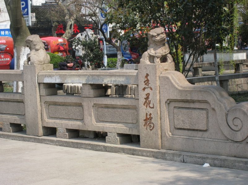 | 香花桥 位于人民路北寺塔前,跨西北街河。宋《平江图》刻录。明万历八年(1580)重修。民国《吴县志》载:永安桥。《姑苏志》:香花桥在报恩寺前。一名永安桥。道光《府志》,清乾隆二十五年(1760)修。”《吴门表隐》载:“北寺前香花桥水底,更有一桥迭之,嘉庆初,开河竟见面石。”原桥面铺石板3块,宽约6米,两旁有石栏杆。1952年加拓石板2块。1959年改建,为水泥结构。1968、1981、1982年几度修建拓宽。现为钢筋混凝土板拱桥。 | ||