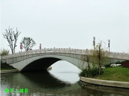 李公堤的桥更能彰显苏州人的文化。大小共有七座,除去刚才提到的不说。自东向西分别是:朝凤桥、如意桥、望荷桥、七彩桥、玲珑桥、腾龙桥、凌云桥、五福桥、同源桥。桥的雕饰、形状、植物、曲线设计各具特色,别具匠心。如望荷桥下是一池荷塘,待到夏天,定是接天荷叶,满眼秀色了;如意桥特意用青砖作桥身,韵味十足;七彩桥因七洞揽月,似被人串起的珠子抖落在河的两畔;腾龙桥暗香浮动;凌云桥气派、优雅;五福桥撇开苏州一贯弧线风格,改为具有现代节奏的折线;同源桥从远处看成“Y”型,非常独特。“姑苏尽枕河”,苏州的桥本身就是苏州一大景观,如果有可能,真想一朝揽尽。