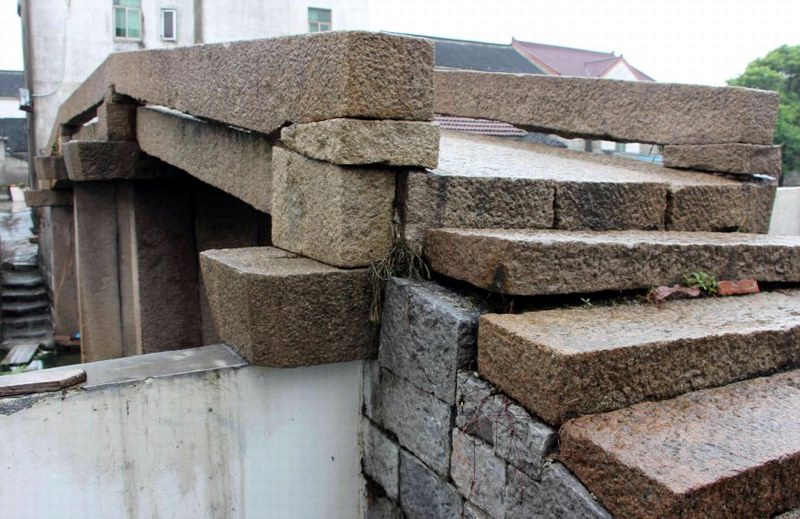 | 旺港桥在八都镇旺港头,初建无考,民国六年(1917)重建。旺港桥南北走向,梁式三孔,全长19.85米、中宽1.65米、高3.4米,堍宽1.85米。桥面两侧刻有:民国六年,旺港桥,里人募建。中孔跨度4.4米。中孔两柱墩分别用3块长4米、宽0.55米、高0.3米条石组成,两柱顶分别用1块长2.6米、宽0.55米、高0.3米枕石。两边桥坡踏步均是整块条石铺级,南坡11级,北坡9级。 1994年,旺港桥列为吴江市文物控制单位。 |