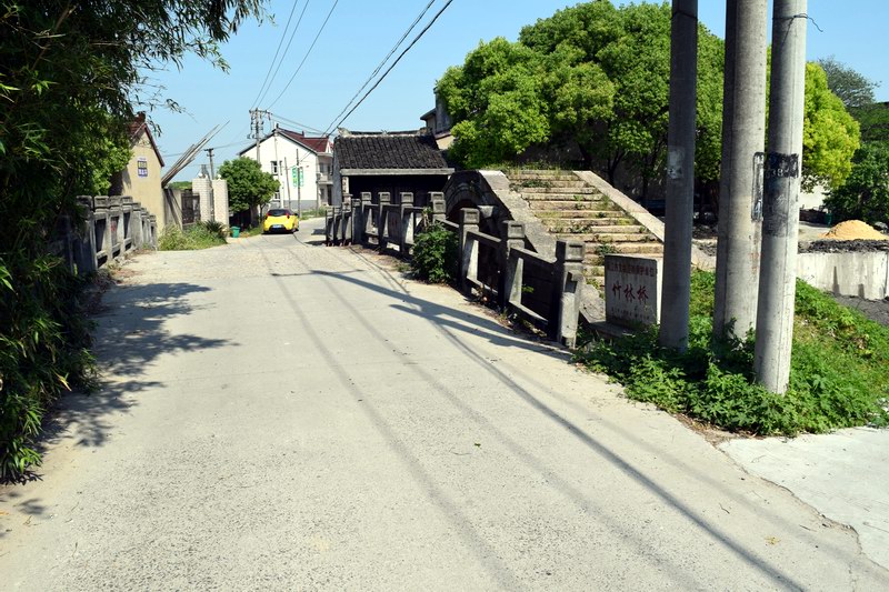 | 竹林桥位于苏州市吴江区横扇镇庙前村1组,东西走向,跨新有圩、笋字圩。 建于清乾隆二十一年(1781年),清乾隆四十六年(1806年)重修。竹林桥为青石花岗石混建单孔石拱桥,桥高3.22米,桥全长15米,跨度6米,宽2.4米。南北存有桥联两副,南面为:“梁跨东西利涉新,泽通南北安澜古”,北面为:“槎浮莫阻乡关去,龙卧疑从震泽来”。 1994年,竹林桥被市政府公布为吴江文物控制单位。现因区划调整被列为苏州市控制保护建筑。 |