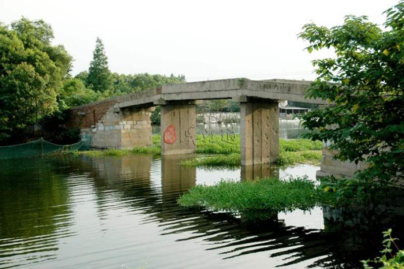 | 又名姜池桥,位于吴江市桃源镇富乡村,跨蒿草路港支流。清光绪二十六年(1900)建造。1994年7月29日列为吴江市文物控制单位。 梁式三孔石桥,南北走向。全长25.7米,宽2.05米,跨径11.5米,中孔高3.5米,中孔跨径6.3米。金刚墙杂有青石,余为花岗石。桥身两侧各有一副楹联。东向楹联:“恃农力之勤劳,徒矸便涉,盼村庄号远近,市语遥闻。”西向楹联:“帆影西来,落向姜牙池畔,水流东去,派分蒿草路中。” |