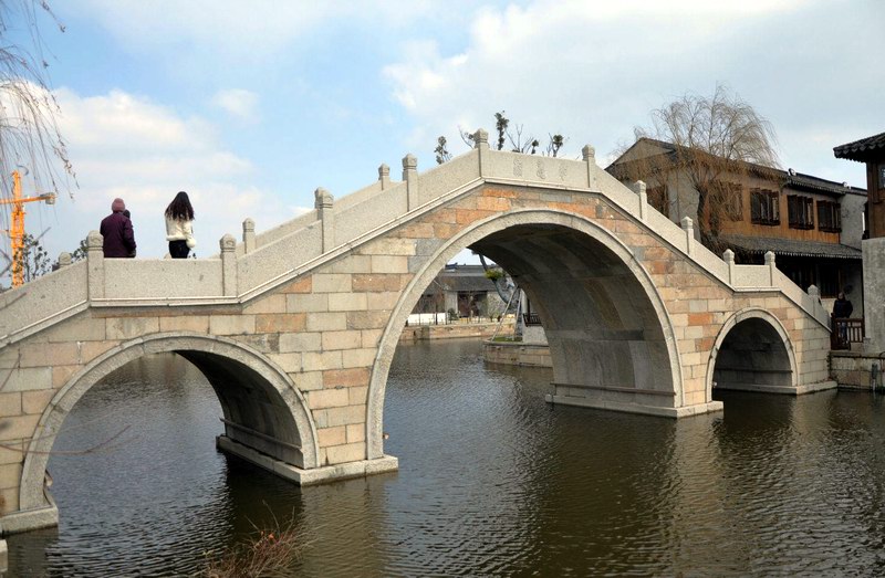 如意桥是一座高大的三孔石拱桥,造型优美。