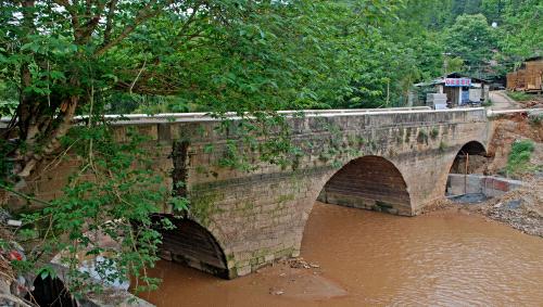 | 犹口桥位于东山镇东门村坝子组油石河出口处,为四墩三孔石拱桥。全长32米,宽5.6米,矢高10米,桥孔跨度4米,桥墩为鹅胸状,桥两头各砌护桥石坝12米。 据《上犹县志·桥渡》记载此桥为“清康熙三十四年建,清道光二年修筑”。《上犹县志·文艺志》记有康熙三十四年邑令章振萼写的《重建犹口桥记》,文中写道:这里原为木桥,而毁。“吴君徵慨然独任其事,与其子文学行藻协力筹划,捐金鸠工,伐石辇土,越二稔而落成,密固筑千百年之业也,尝试登东城而眺望,则虹亘青之外,龙吟绿屿之间……”。从中得知,此桥系一六九五年由吴徵、吴文学父子建成,距今300多年历史。有一定的建筑、历史价值。1984年5月列为县人民政府第二批文物保护单位。 |