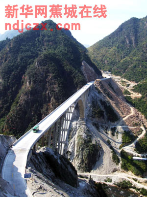 天池特大桥全长405.9米,其中主拱圈净跨205米,是全国同类桥梁中跨径最大的;桥高142米,为全省之最;