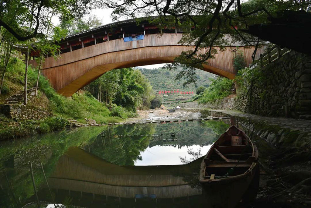 | 福安市社口镇坦洋村真武桥,始建于清代,1959年重建,拱跨31米。 【坦洋双桥】 位于中国历史名茶“坦洋工夫” 的发祥地——福安市社口镇坦洋村,溪上两座廊桥,一条是龙桥,也就是现在的真武桥,横跨坦洋清溪;一条是凤桥,两座廊桥相距七、八十米,横跨小溪。作为当年的茶叶交易重要场所和茶叶运输的重要通道,龙凤桥见证了坦洋工夫昔日的繁华和落寞。 |
