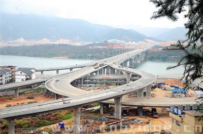 南平夏道大桥,位于福建省南平市延平区,起于夏道镇小鸠村桥头,跨闽江到达高速铁路延平站站前广场,中间连接土目洲。该桥由中交第三航务工程局有限公司承建,于2010年11月开工,预计2013年底建成通车。