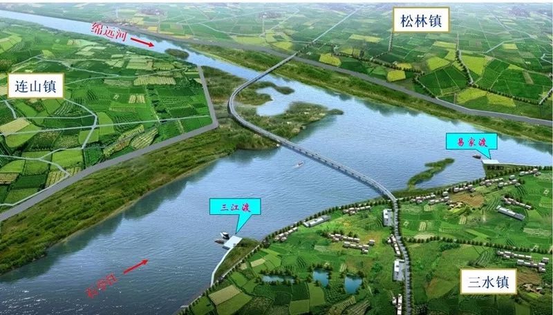 | 三江大桥梁新建工程位于广汉市与金堂县交界,湔江、石亭江与绵远河交汇处,起于三水镇易家河坝农场附近,与规划道路顺接,最终接入省道S422。路线自西向东布设,以一座1388米长的特大简支梁桥横跨石亭江河、绵远河至松林镇黄家河坝,止于县道X054旌金路、松林镇场入口附近,长1452米,宽12米。其中,大桥长1388米。 | ||