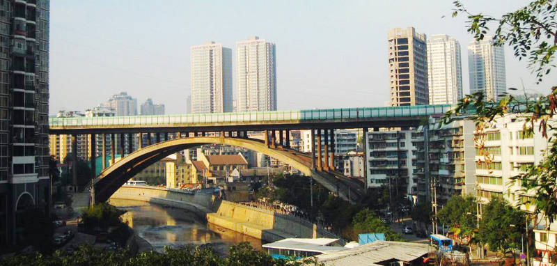 水口寺大桥位于贵阳市东北绕城公路,为预应力箱形拱桥,桥长670米,主跨110米。于1993年6月开工,1997年5月竣工。