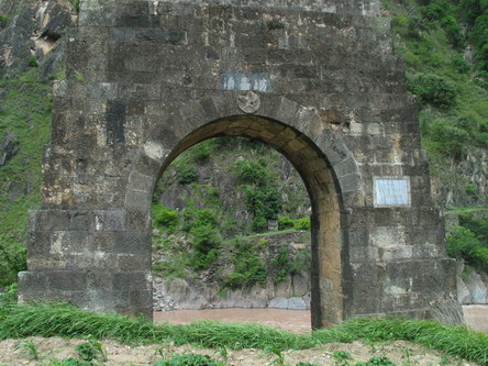 1938年,滇缅公路建成通车,澜沧江上建成一座柔性钢索吊桥--功果桥。该桥1938年3月1日开工,同年5月21日竣工,设计载重7.5吨,桥塔采用石砌拱形门式,高7.75米,行车道净宽仅3米。 |