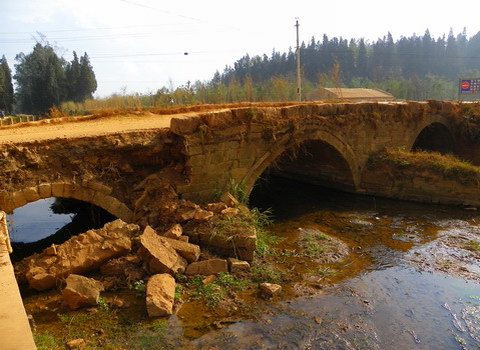 嵩明城西丹凤村有座丹凤桥,跨越普沙河,明朝正德年间(1506—1522年)修建,为三孔石拱桥。据当地群众介绍,丹凤桥昔日也很壮观,由于河道淤塞,重车碾压,现显得有些低矮,而且,一侧桥孔已发生垮塌。
