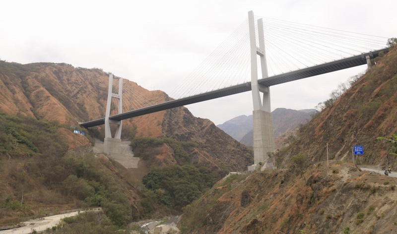 | 双河特大桥位于巧家县金塘镇,作为格巧高速公路的重点控制性工程之一,大桥桥梁全长705.6米,是云南省最大的高低塔组合梁斜拉桥,其中高塔2号索塔高229m,低塔3号索塔高170m,是全省在建桥梁中桥塔最高的。 双河特大桥位于巧家县金塘镇,横跨金沙江支流双河,距离金沙江仅一公里,是一座双塔双索面高低塔组合梁斜拉桥,全长705.6米。其主塔高达229米,桥身设计兼具美学与工程难度,是巧家县的地标性建筑。在大桥附近可俯瞰双河汇入金沙江的壮丽景象,峡谷间江水碧绿,两岸山势陡峭,尤其在秋季,层林尽染,倒映江中,形成“山水辉映、蓝绿交织”的画卷。 |