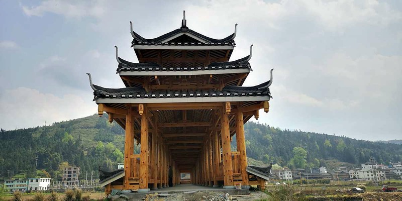 | 坐落在桂林市龙胜各族自治县平等镇平等侗寨的“孟美”风雨桥,始建于清代咸丰四年(1854年),原为石柱木桥,1936年被洪水冲毁,次年重建改为石礅桥。 1985年,该桥改建为平板钢筋水泥桥,是当地群众通往湖南通道县和生产生活中的重要道路。2017年7月1日,一场洪水将此桥再次冲毁。 2018年9月,该村群众自发捐款40多万元,重建这座已有100多年历史的风雨桥,并改名为“平等侗寨红军风雨桥”。 这座横跨平等河的风雨桥,为石礅木结构楼阁式建筑,墩台上建有5座塔式桥亭和35间桥廊,亭廊相连,浑然一体。整个建筑没有使用一颗铁钉,庞大的木质结构完全靠木榫衔接。桥长74米,宽4.5米,高12米,由下、中、上三部分组成。下部是桥墩,用大青石围砌,以料石填心,呈菱形柱体,上下游的位置均为锐角,以减少洪水的冲击。中部为桥面,采用悬臂托架简支梁体系。上部为桥面廊亭,采用榫卯结合的梁柱体系联成整体。桥的两旁镶着栏杆,好似一条长廊。桥中有5个多角塔形亭子,飞檐高翘,犹如羽翼舒展。整座风雨桥雄伟壮观,气势浑厚。 |